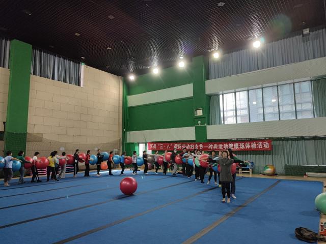 3月31日下午,校工会在邱季端体育馆举办了庆祝“三·八”国际劳动妇女节系列活动之“时尚运动——健康球”体验课。这次体验课由体育与运动学院教授姜桂萍授课,共有50多位老师参加了活动。