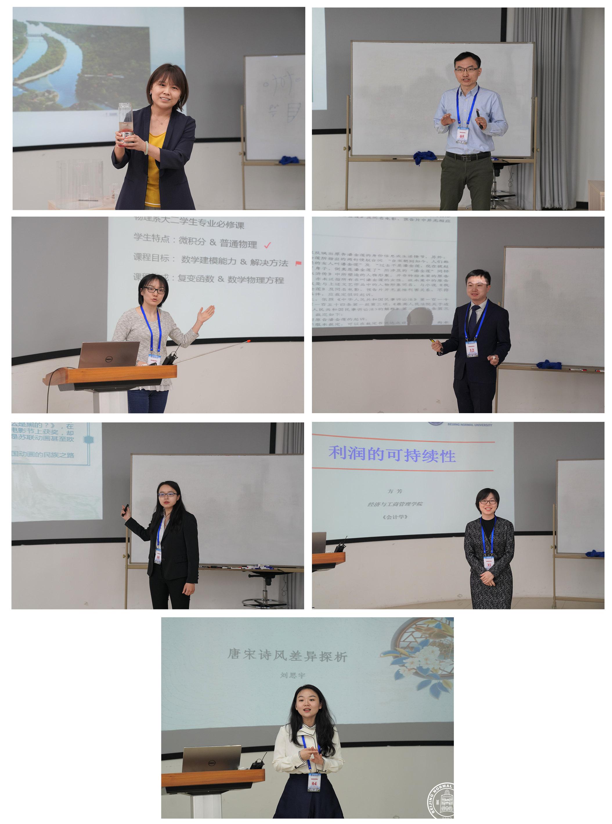 组委会特邀国家级教学名师王静爱、张斌贤、王一川、欧阳津,研究生教学督导杨澄宇等教师担任现场评委,王静爱任组长。比赛分为人文科学类、社科思政类、理科类共3个组别。来自学校10个学部院系的17名选手参加了竞赛。