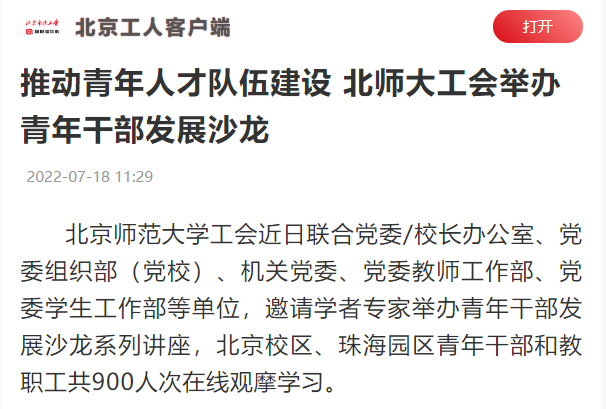 相关报道:《推动青年人才队伍建设 北师大工会举办青年干部发展沙龙》