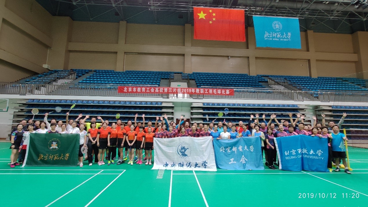 10月12日上午,由北京市教育工会高校第三片组主办,mjm世界杯官网承办的2019年片组教职工羽毛球比赛在mjm世界杯官网邱季端体育馆成功举办。北京邮电大学工会常务副主席邓丽敏,中央财经大学工会常务副主席贺小海,北京经济管理职业学院党委副书记、院长姚光业和工会常务副主席刘志东,北京教育考试院工会常务副主席安永杰,北京开放大学工会办公室主任耿建国,以及来自6所高校的70余名运动员参加了为期半天的比赛。